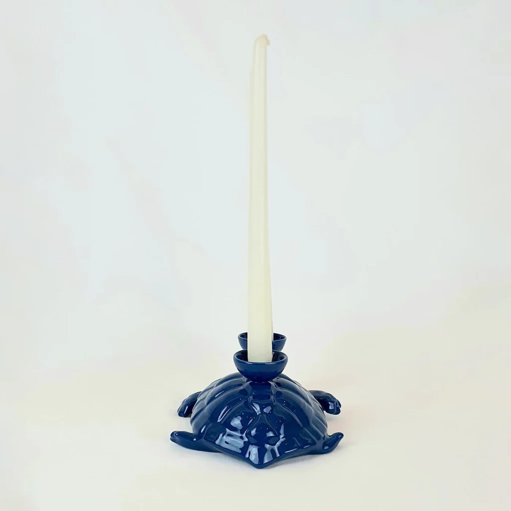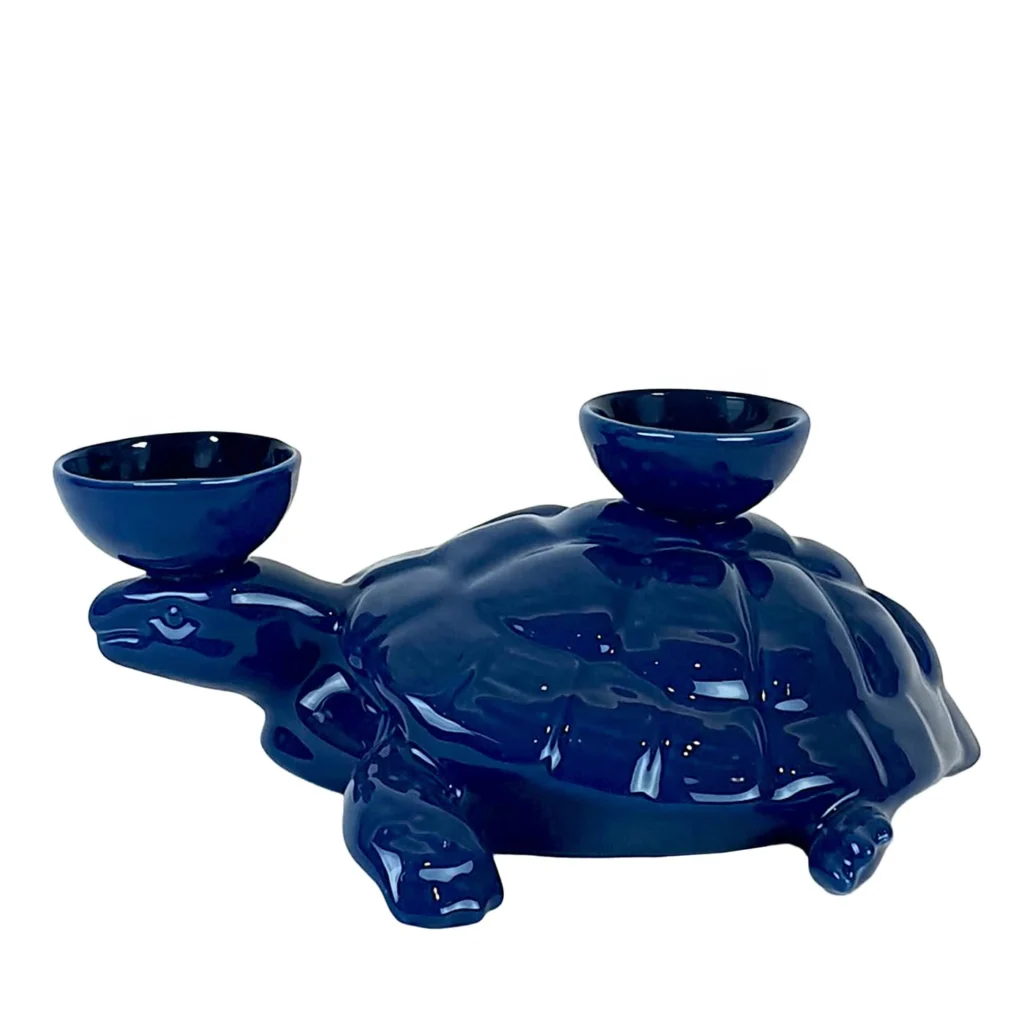 Portacandele in ceramica a forma di tartaruga blu Fiamme Bestiali